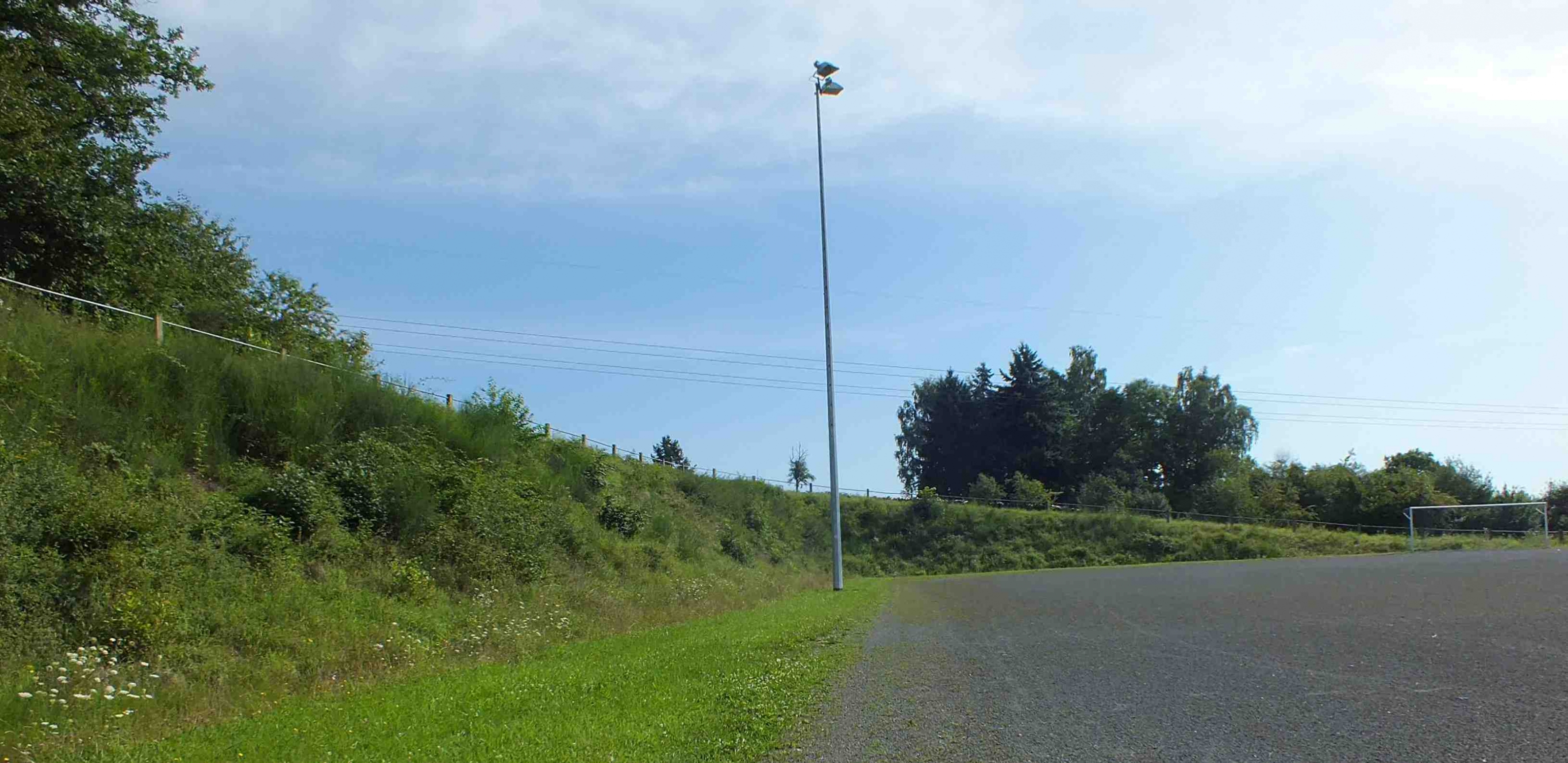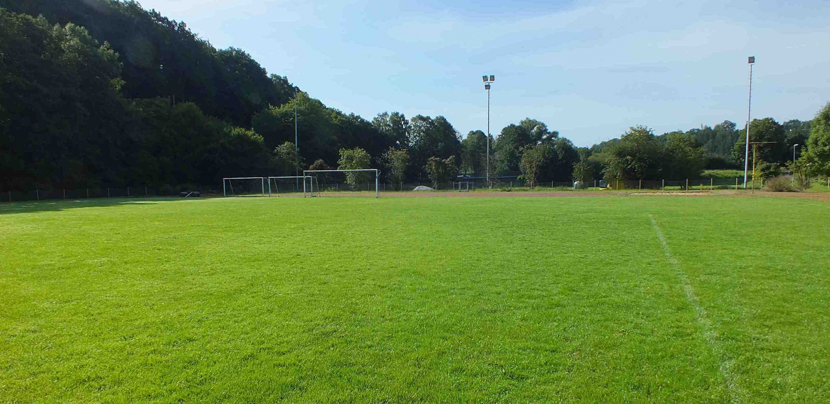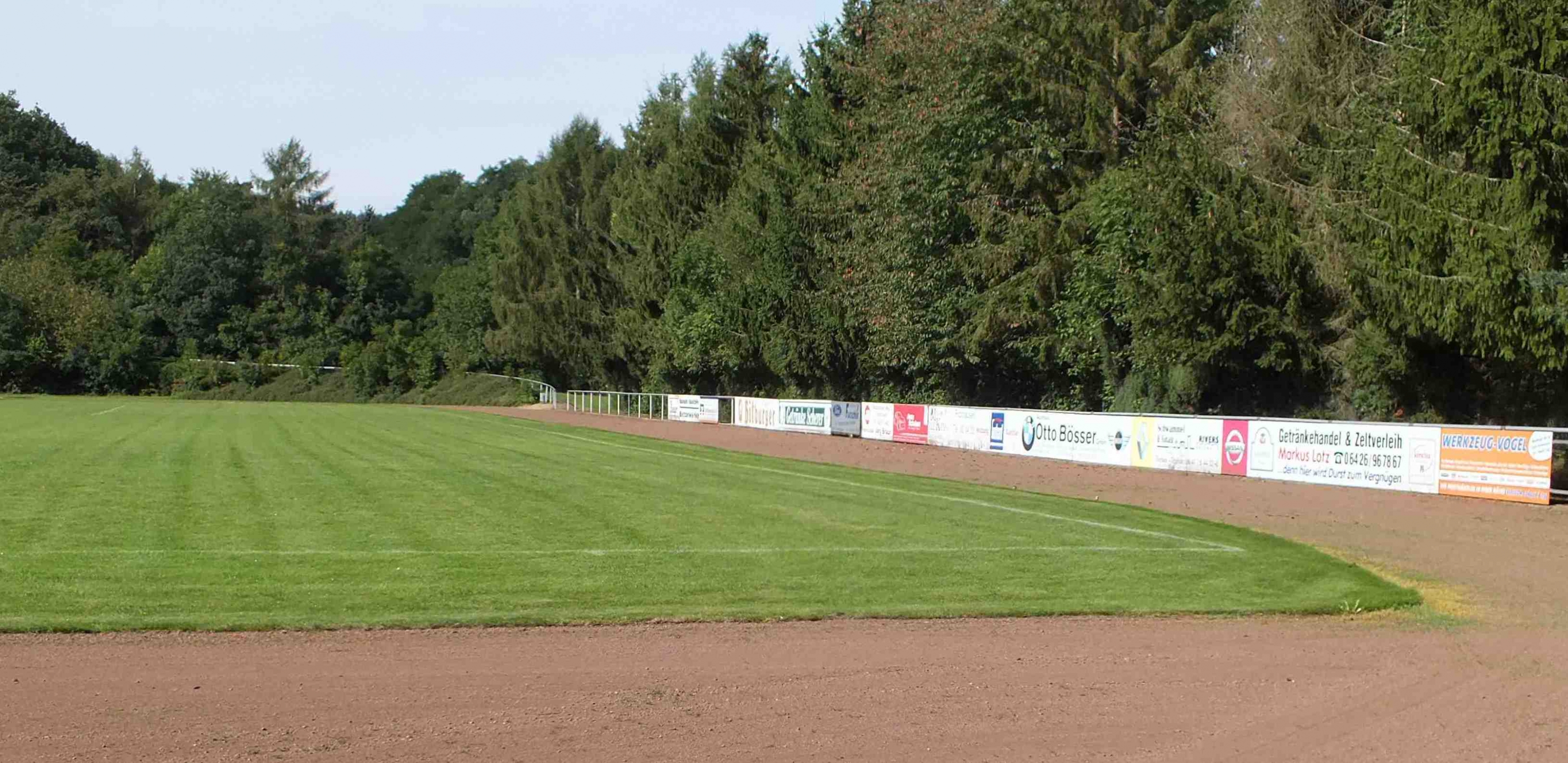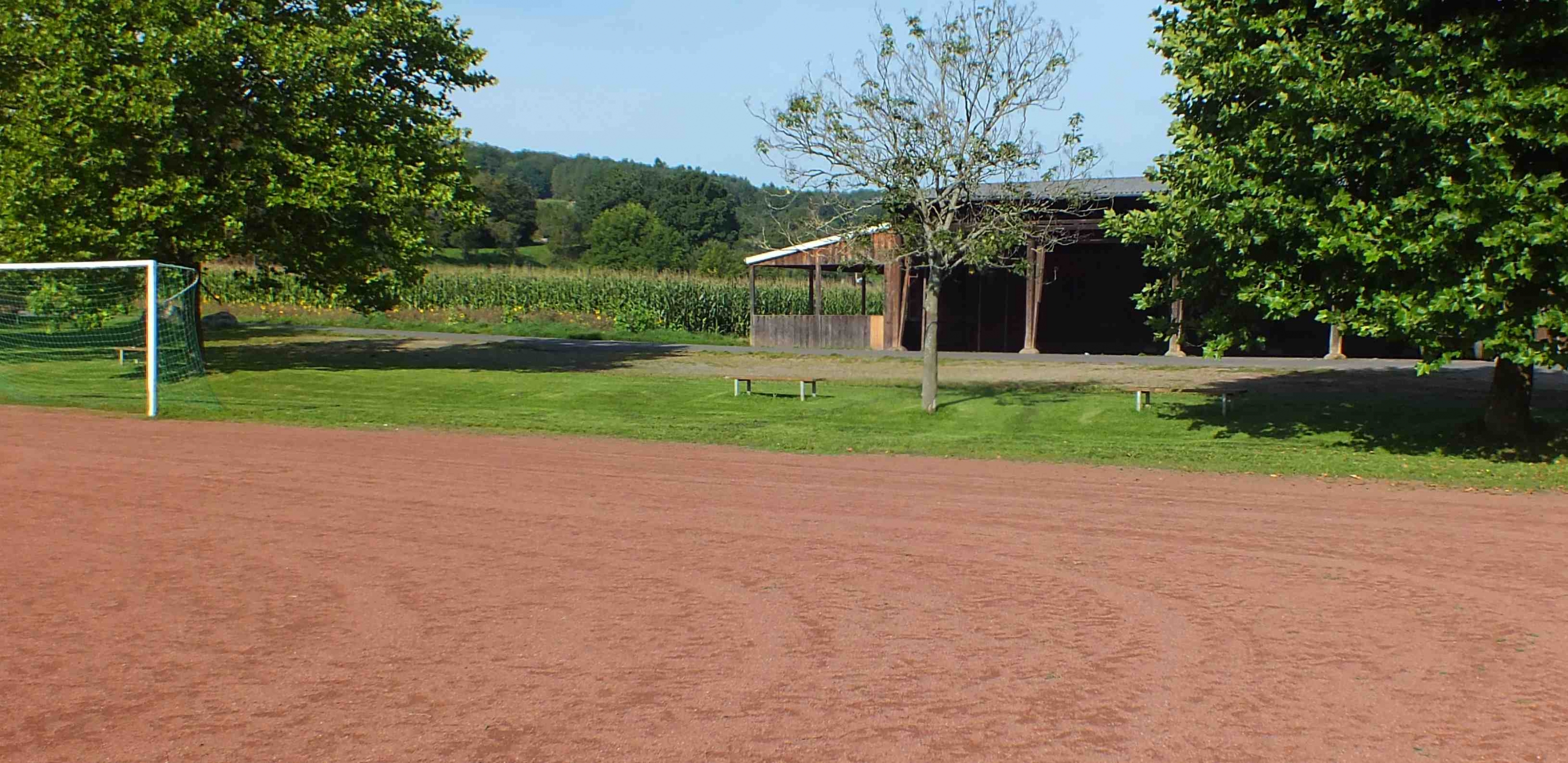 Da der unmittelbare neben dem Rasenplatz gelegene alte Ascheplatz mittlerweile aufgegeben wurde und verwildern durfte, ist auch für ausreichende Parkplätze selbst bei großen Ereignissen - wie unserem legendären Lahntal-Soccer-Junior Cup - jederzeit bestens gesorgt. Auch hier hilft das Vordach vom Sportlerheim bei Regen trocken bleiben zu können und gleichzeitig die Akteure weiter zu verfolgen. Ein Außen-Bierpilz sowie die ein Außen-Grillplatz ermöglichen auch auf diesem Platz die Versorgung der Zuschauer bei gleichzeitiger Verfolgung des sportlichen Geschehens. Die Zuschauer können von 2 Seiten den mit internationalen Maßen versehenen Platz perfekt einsehen und am Spieltag aufgestellte Sitzmöglichkeiten gibt es auch.