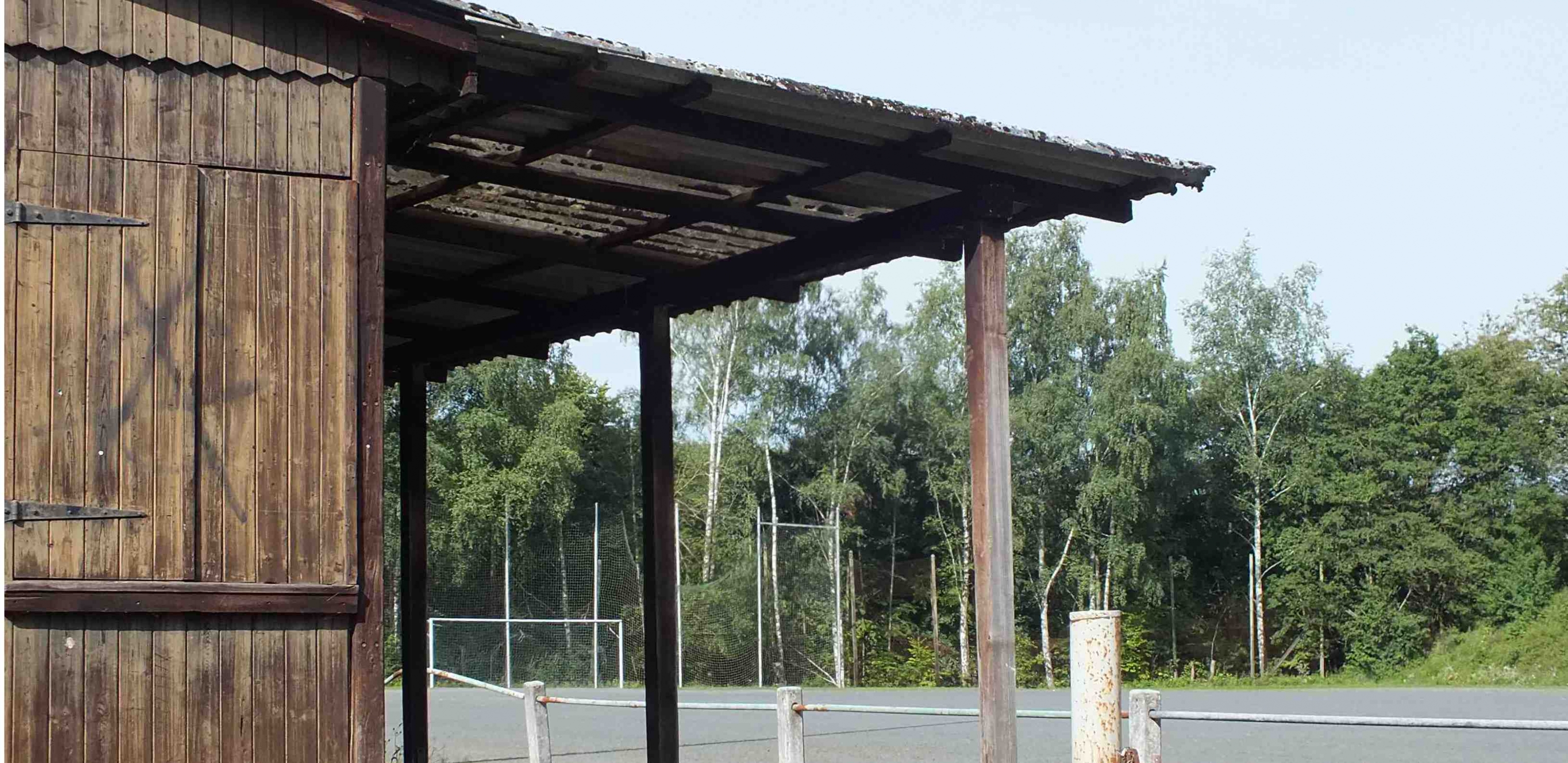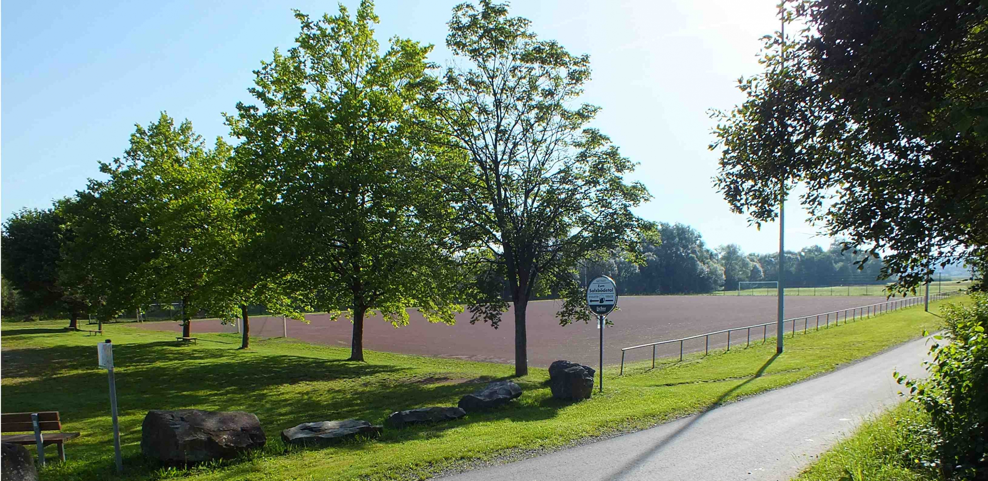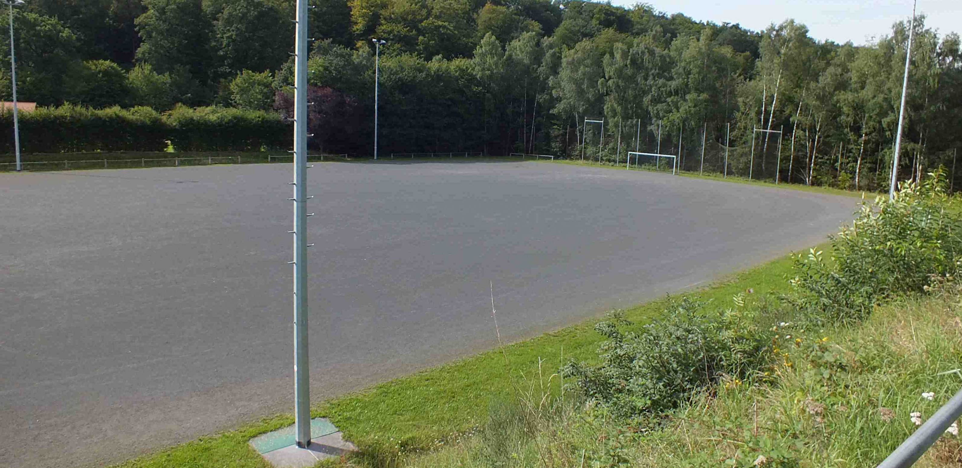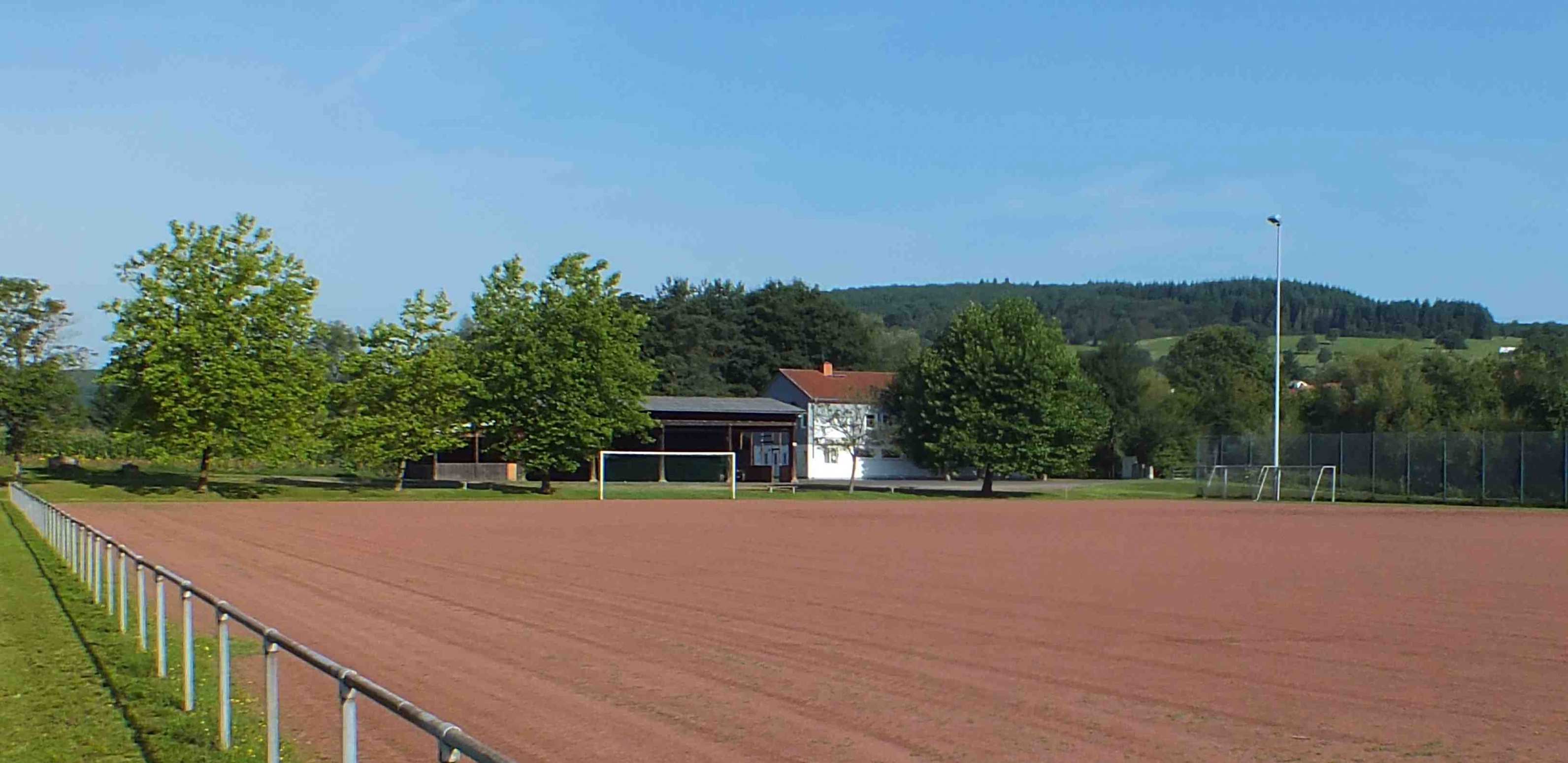 Da der unmittelbare neben dem Rasenplatz gelegene alte Ascheplatz mittlerweile aufgegeben wurde und verwildern durfte, ist auch für ausreichende Parkplätze selbst bei großen Ereignissen - wie unserem legendären Lahntal-Soccer-Junior Cup - jederzeit bestens gesorgt. Auch hier hilft das Vordach vom Sportlerheim bei Regen trocken bleiben zu können und gleichzeitig die Akteure weiter zu verfolgen. Ein Außen-Bierpilz sowie die ein Außen-Grillplatz ermöglichen auch auf diesem Platz die Versorgung der Zuschauer bei gleichzeitiger Verfolgung des sportlichen Geschehens. Die Zuschauer können von 2 Seiten den mit internationalen Maßen versehenen Platz perfekt einsehen und am Spieltag aufgestellte Sitzmöglichkeiten gibt es auch.