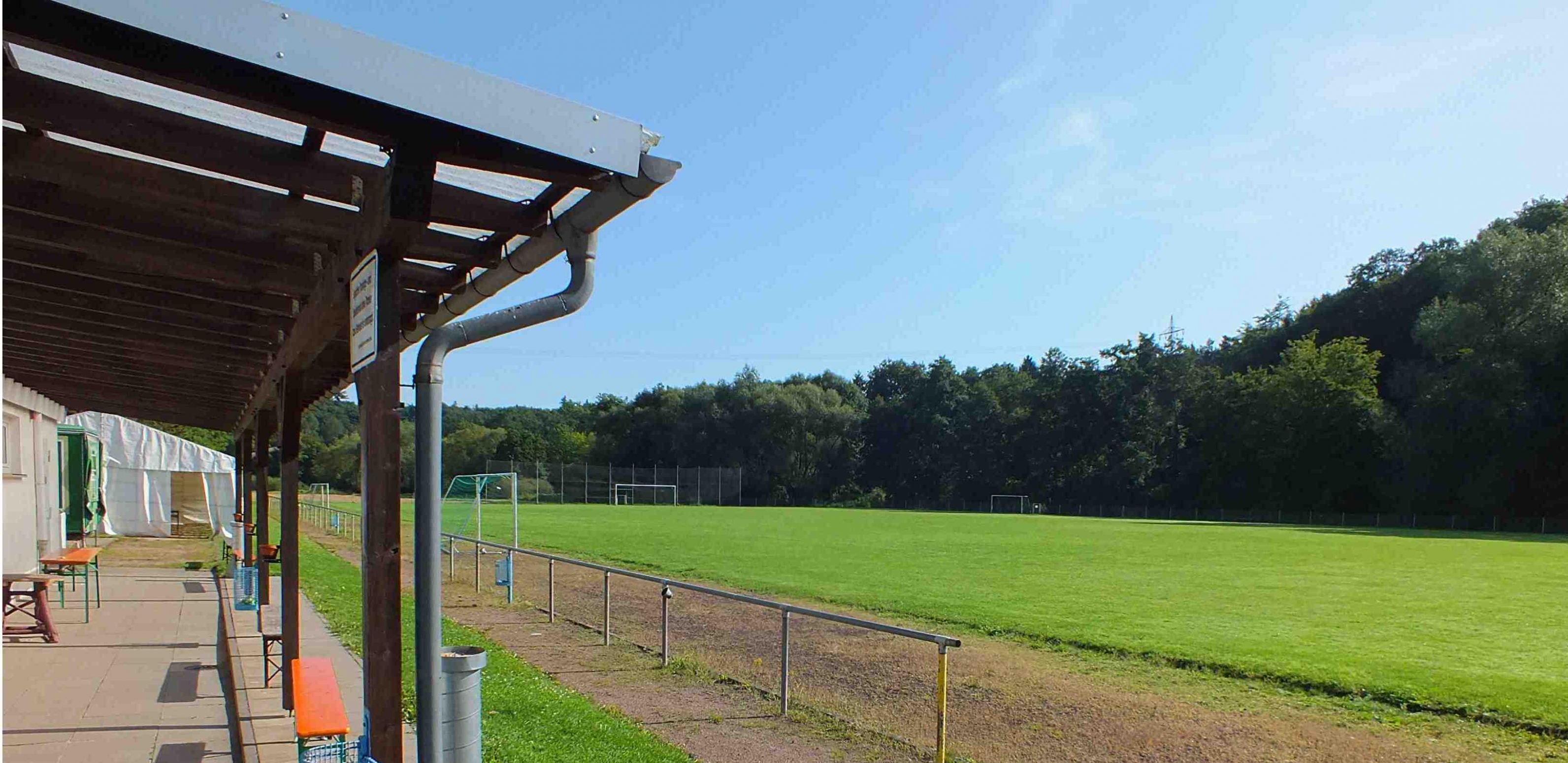 Da der unmittelbare neben dem Rasenplatz gelegene alte Ascheplatz mittlerweile aufgegeben wurde und verwildern durfte, ist auch für ausreichende Parkplätze selbst bei großen Ereignissen - wie unserem legendären Lahntal-Soccer-Junior Cup - jederzeit bestens gesorgt. Auch hier hilft das Vordach vom Sportlerheim bei Regen trocken bleiben zu können und gleichzeitig die Akteure weiter zu verfolgen. Ein Außen-Bierpilz sowie die ein Außen-Grillplatz ermöglichen auch auf diesem Platz die Versorgung der Zuschauer bei gleichzeitiger Verfolgung des sportlichen Geschehens. Die Zuschauer können von 2 Seiten den mit internationalen Maßen versehenen Platz perfekt einsehen und am Spieltag aufgestellte Sitzmöglichkeiten gibt es auch.